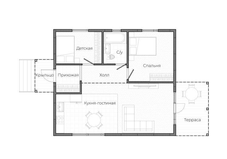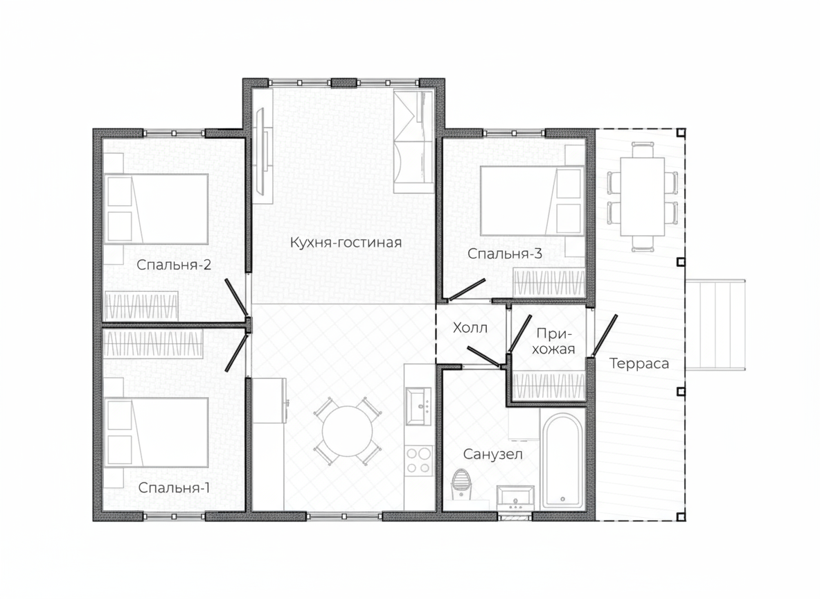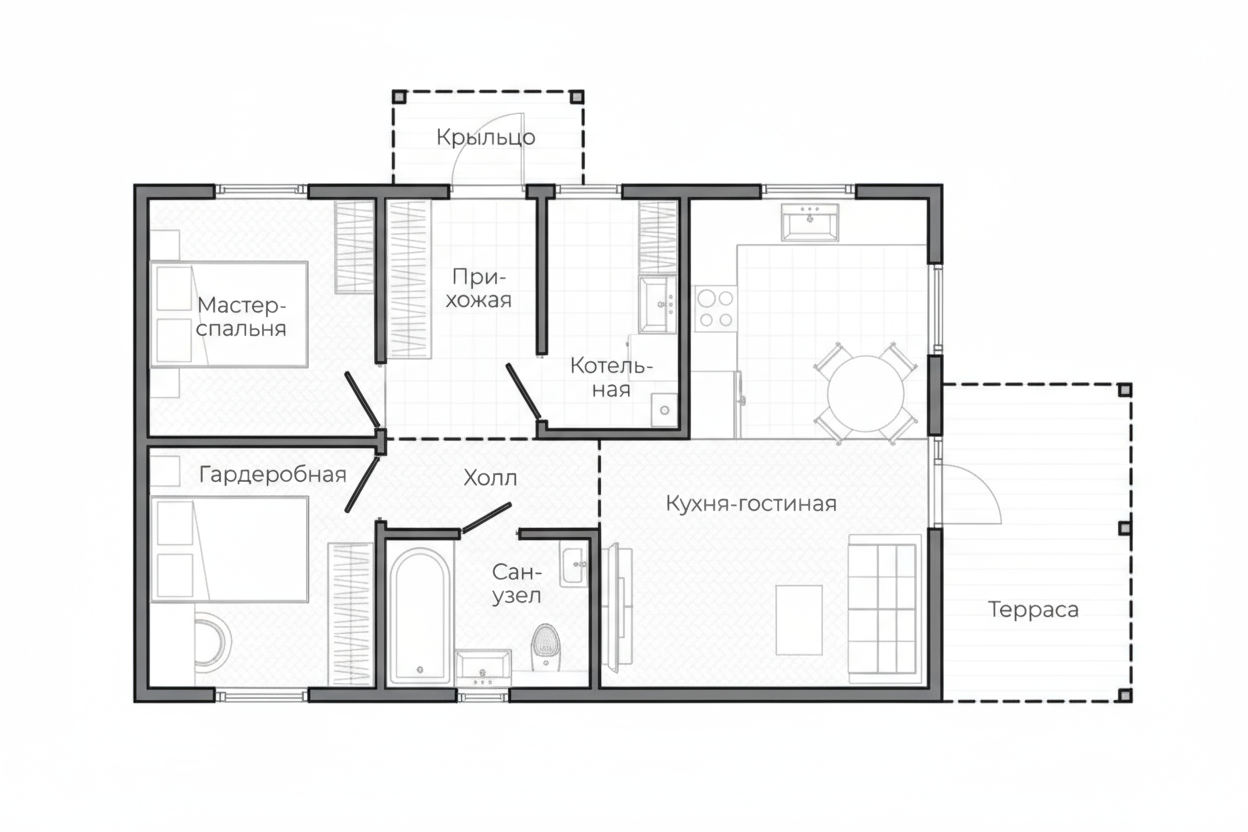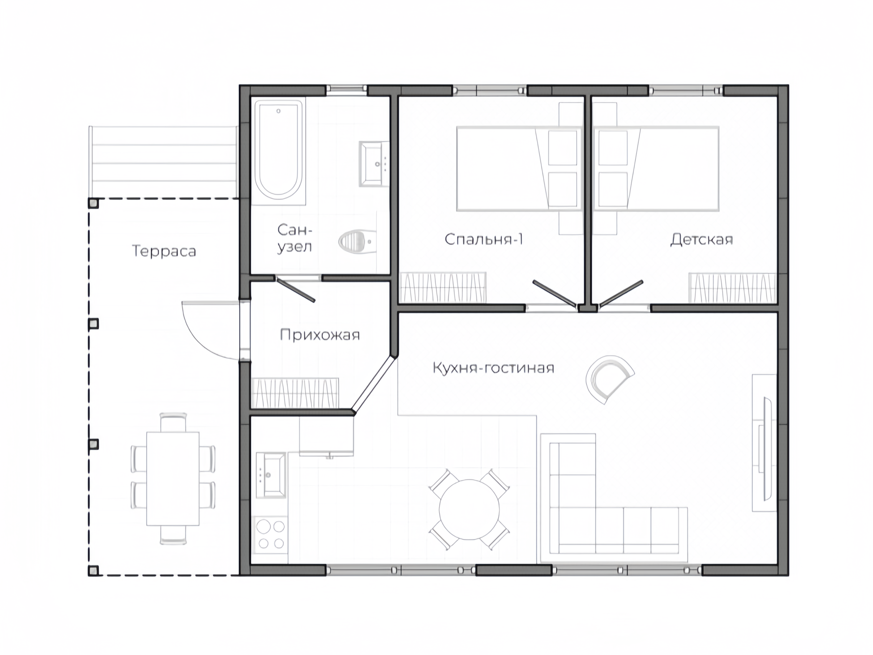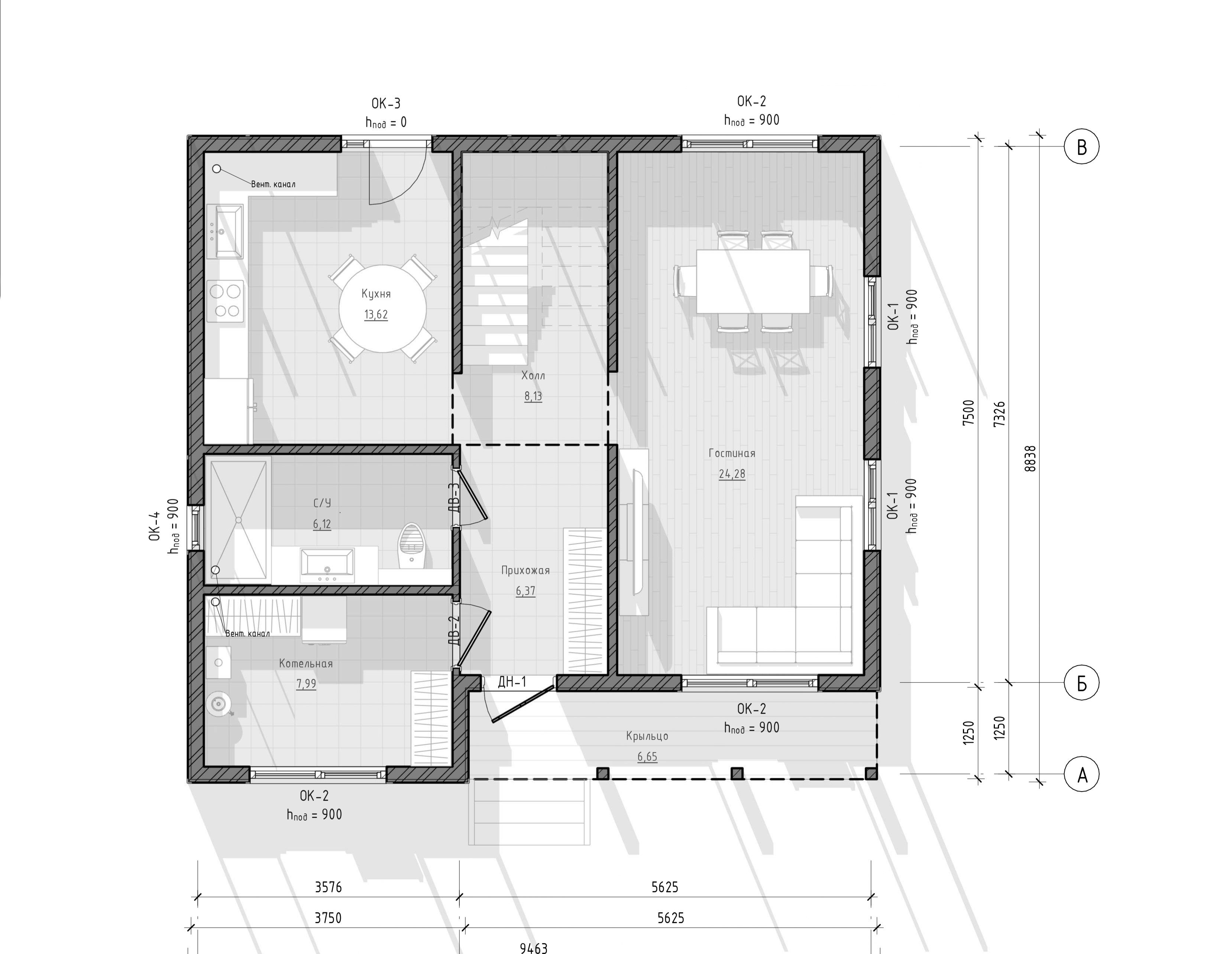 ✓ Внутренняя отделка: гипсокартон и полусухая стяжка пола по первому этажу